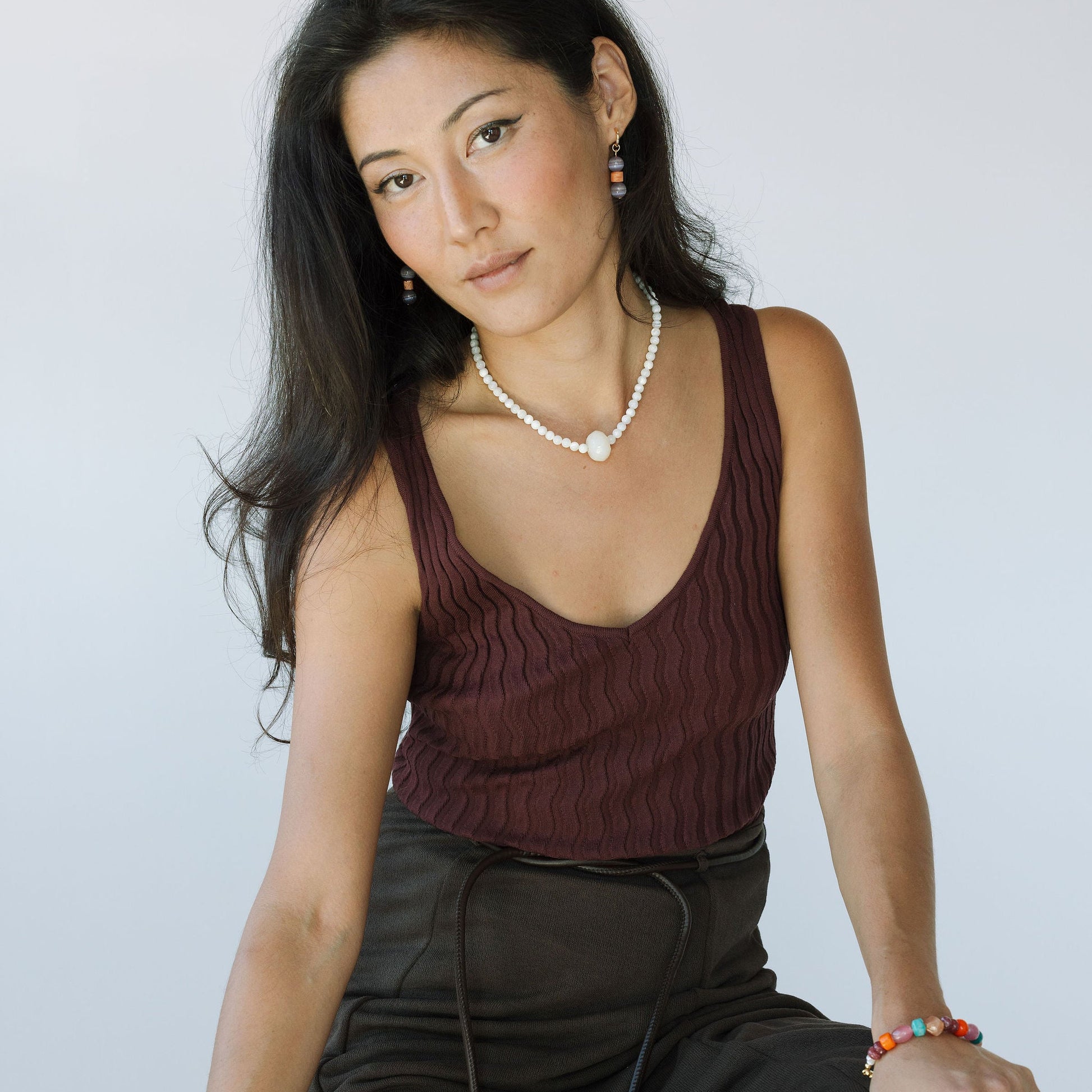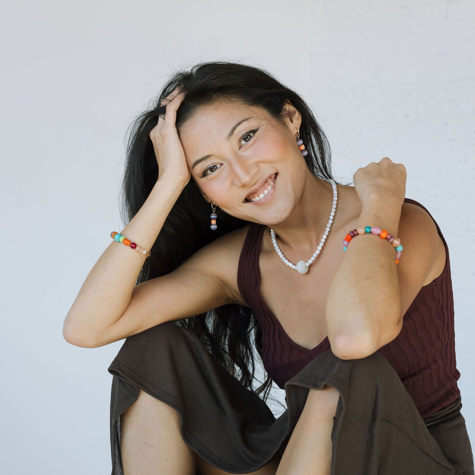 Soft, minimal, and timeless — The Cloud Necklace drifts effortlessly between simplicity and shimmer. Made with vintage white glass beads and centered by a single faceted white bead, it catches the light in the most subtle way.